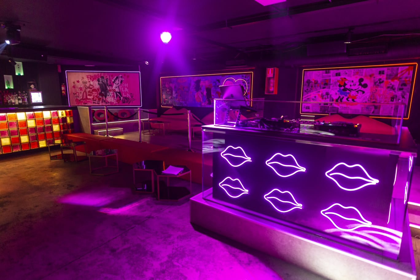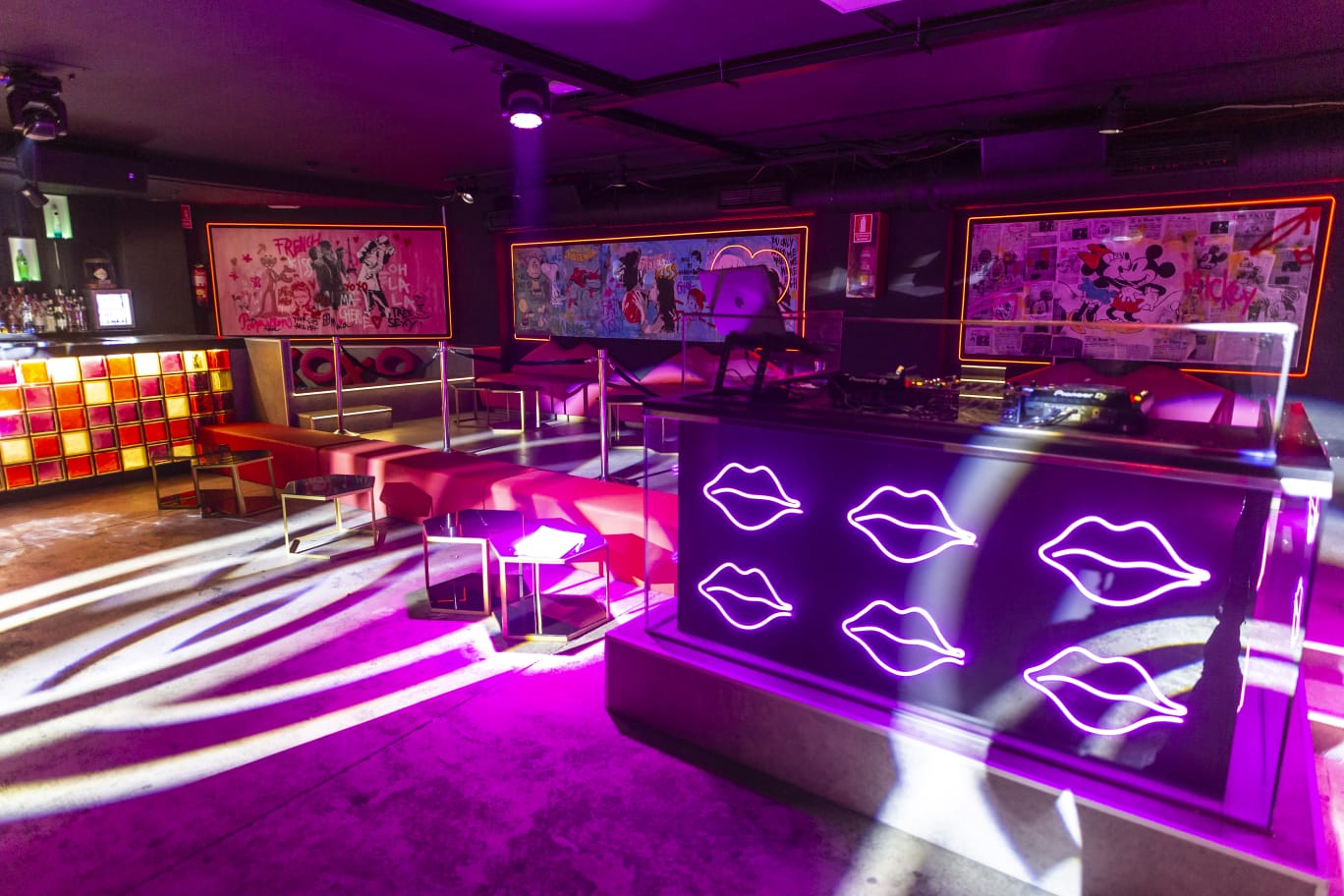 En su barra podrás encontrar botellas con bebidas para todos los gustos, las cuales han sido cuidadosa y estratégicamente colocadas en función de su tonalidad. Sus bonitas y espaciosas zonas VIP son perfectas para gozar de una velada mágica. Sus sofás rosas tienen la original forma de unos labios. En el centro de la sala se encuentra una cabina de DJ, y es detrás de ella donde se ubican sus reservados.
