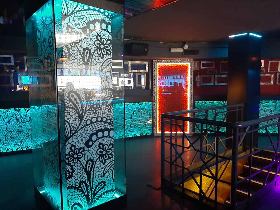 Próximos al local también hay paradas de autobús, taxis, Uber y Cabify. Destaca por ser un establecimiento con una decoración moderna, sofisticada y original, un local que invita a la diversión, donde se cuida hasta el más mínimo detalle. La pieza estrella de esta discoteca es su larga barra, la cual se encuentra perfectamente vestida con coloridos azulejos que siguen un bonito patrón de mosaicos tradicionales.